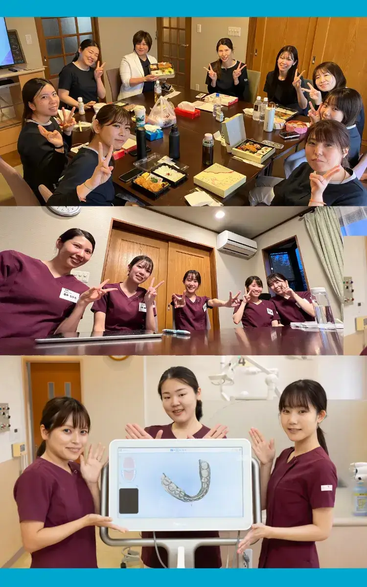 皆さんのお悩みを解決し御満足いただける歯医者さんを目指す当院。その為にもチームワークの良いスタッフ達の協力は欠かせません。明るく・楽しく・元気良くが当院のモットーです。
