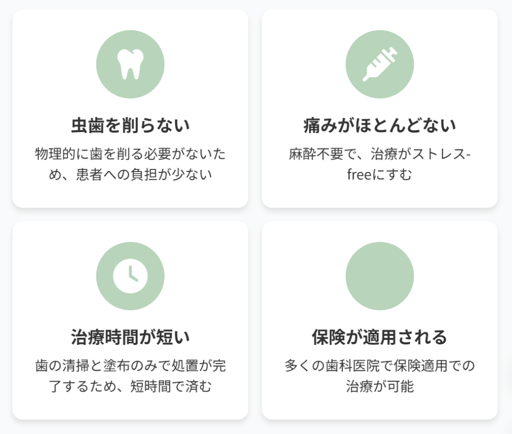 最大の特徴は、歯を削らずに塗るだけで治療ができること。