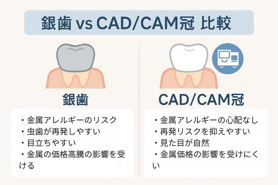 「金属が高いから」ではなく「患者さんの身体にやさしく、見た目が自然で再発リスクを減らせる治療だから」