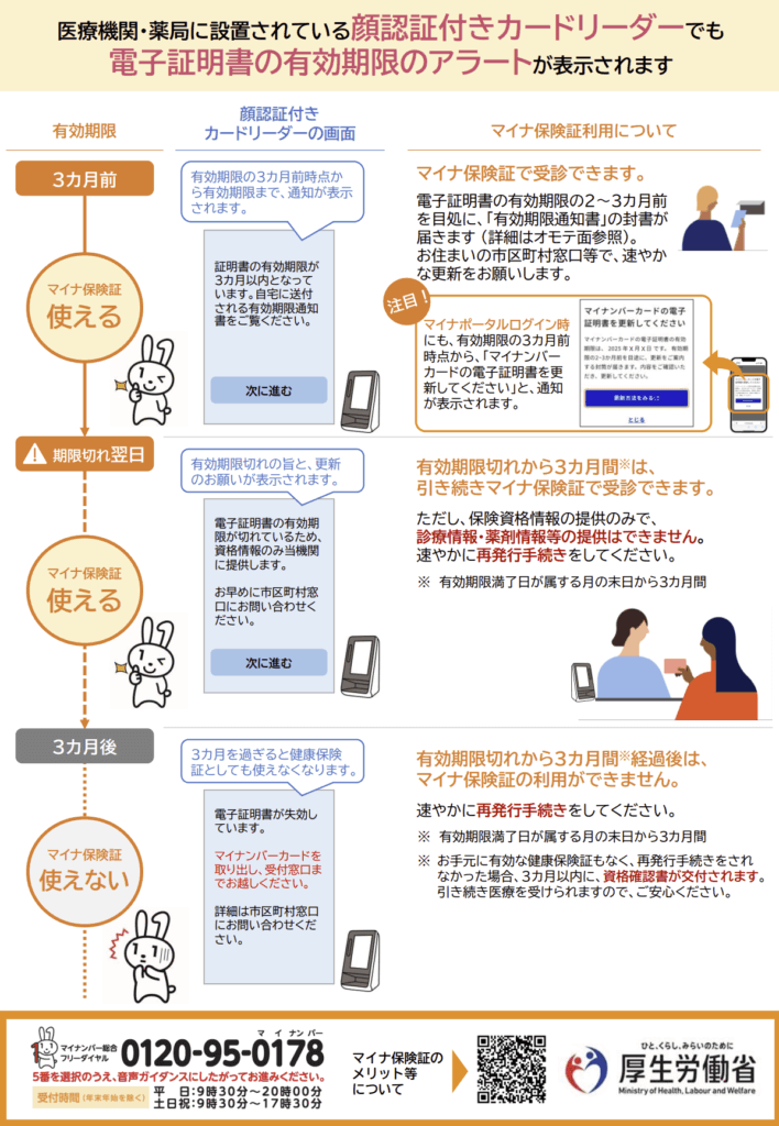 最近では、マイナ保険証で受診される患者さんが徐々に増えてきています。ですが、中には、「電子証明書の有効期限が切れており、受付でエラーが表示されてしまう」というケースが実際に発生しています。