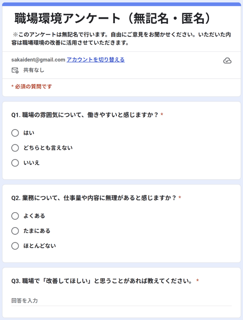 改善点を求める声と同時に、働きやすい点・好きな点・医院への期待など前向きな内容も多く、スタッフ同士・院長との関係性が良い方向にあることを再認識しました。